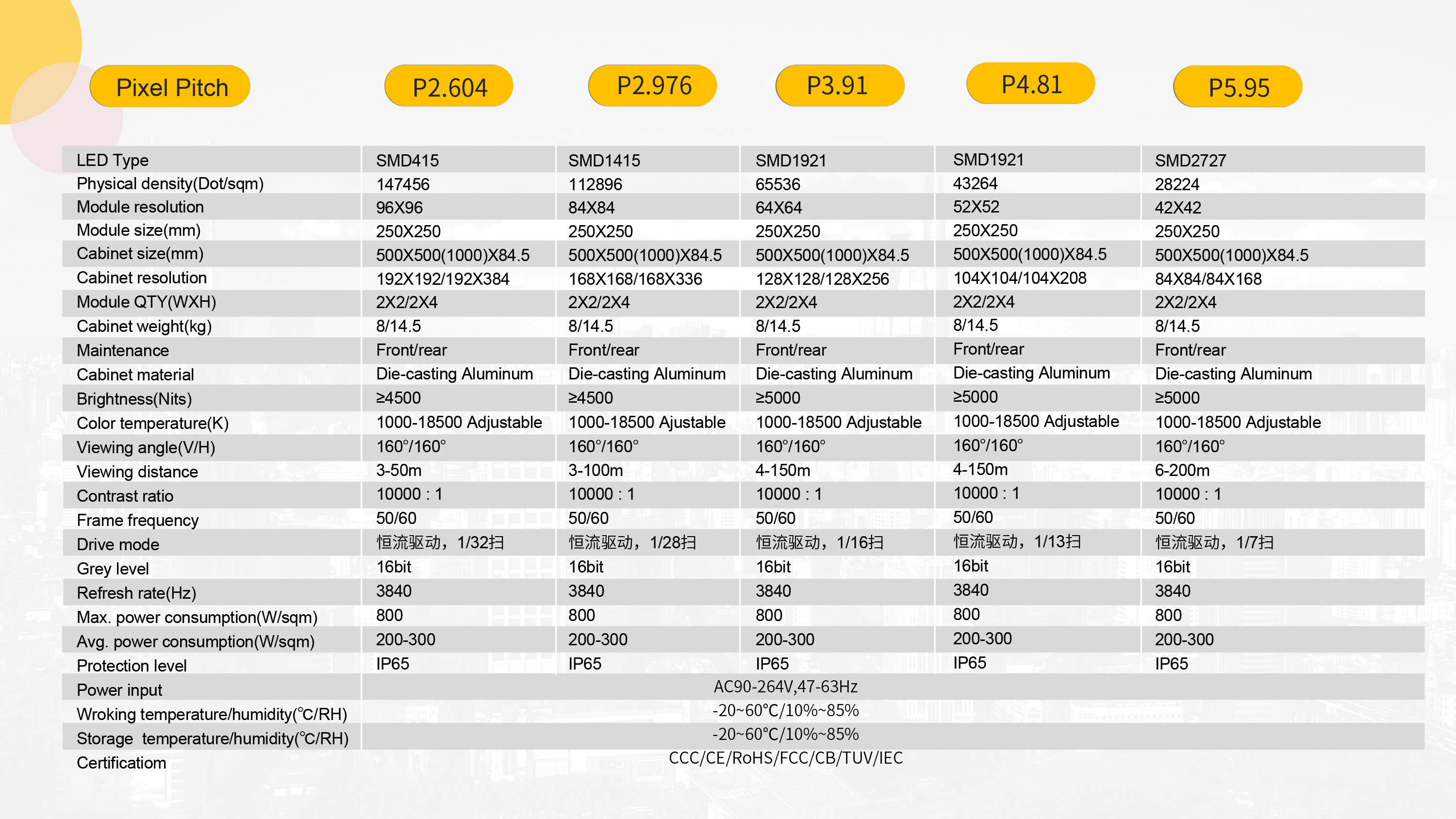 P1.5625/P1.95/P2.5/P2.604/P2.98/P3.91(500X500,1000)