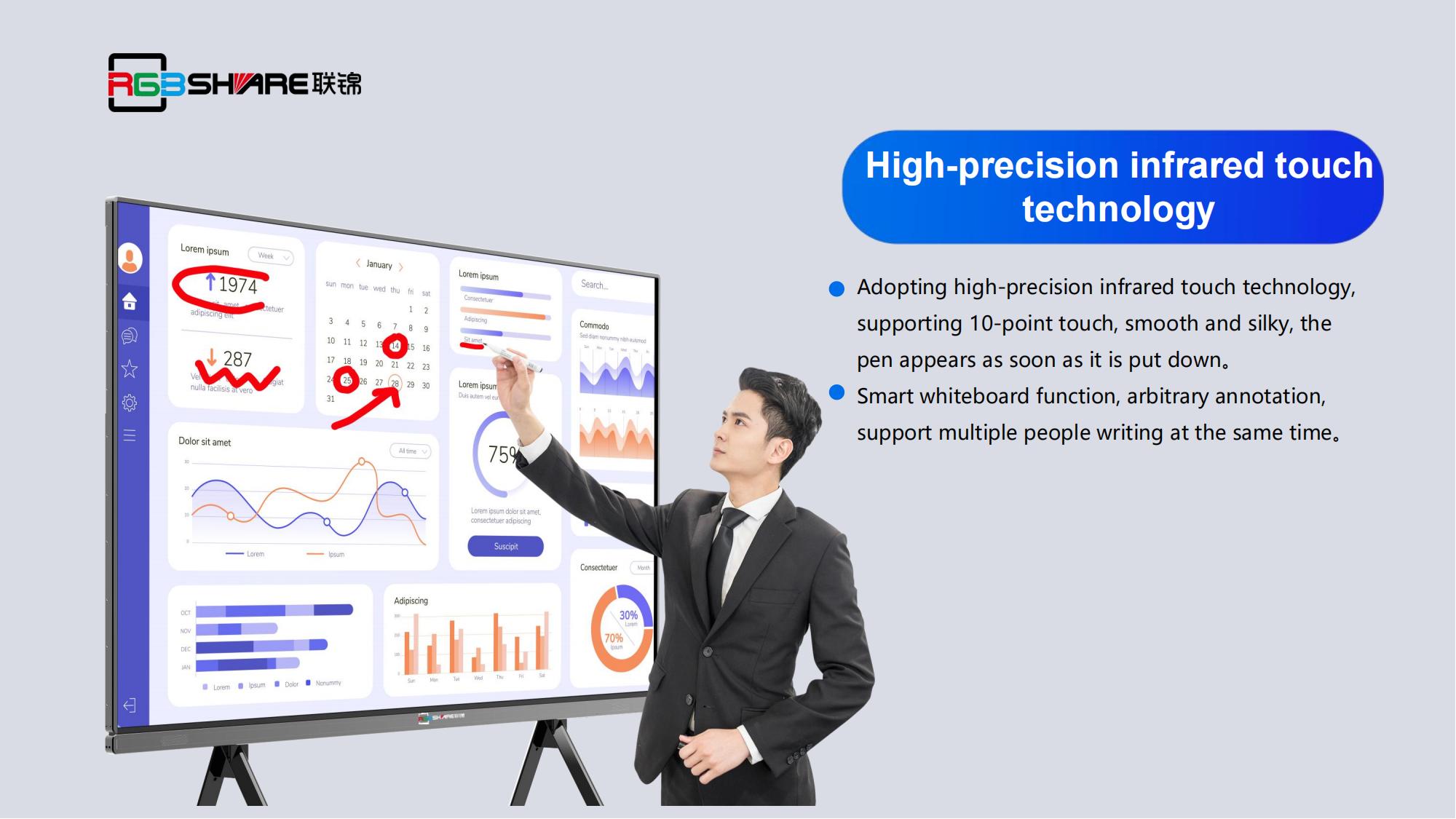?High precision infrared touch technology, supporting 20 point touch, smooth writing;